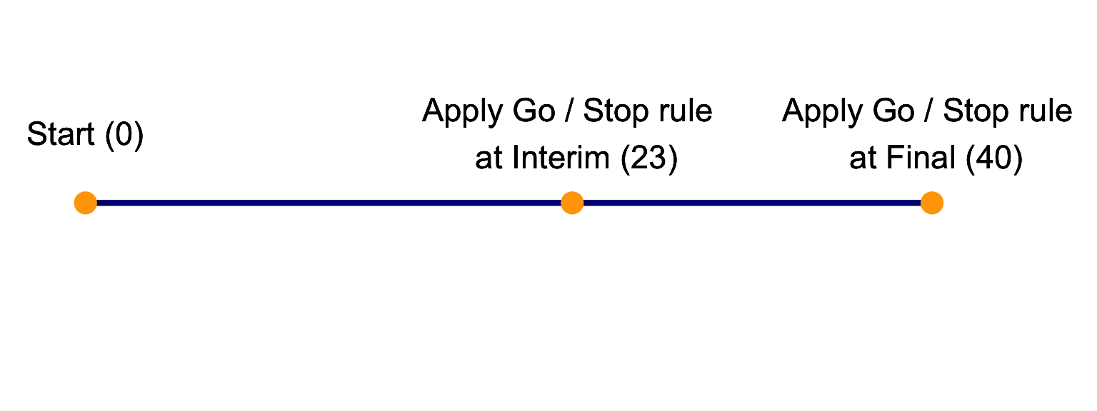 Interim : \[ p > 99.50 \% \] Final: \[ p > 99.50 \% \]