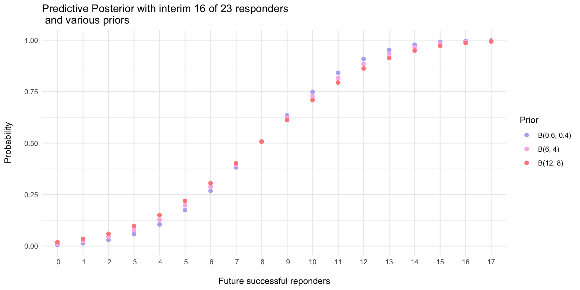 stronger_prior <- phase1b::postprob(x = 16, n = 23, p = 0.60, par = c(6, 4))